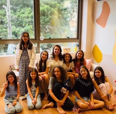 Grupos terapêuticos voltados para adolescentes, com foco em temas centrais dessa fase do desenvolvimento, como uso consciente das redes sociais, puberdade, menarca, mudanças corporais, emoções e construção da identidade. Os encontros acontecem em um espaço seguro e de escuta, promovendo troca de experiências, psicoeducação e fortalecimento emocional, respeitando o ritmo e as vivências de cada adolescente.